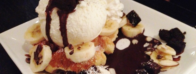 Dad got the Chocolate Banana Waffle. The waffle itself isn’t too special, but you get loads of ingredients on top and on the side. They don’t cheap out on the slices of bananas, and there’s also a lot of chocolate brownie cakes on the side. A huge scoop of vanilla bean ice cream and whipped cream to top it off.