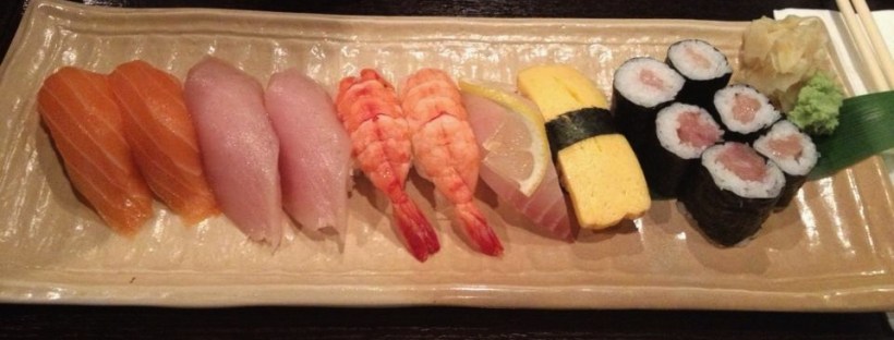 They have a regular menu with things such as specialty rolls, but they are over $10 each. All of us ended up going for their combos which seemed to be a better deal. I don’t remember exactly what Y’s combo number was, but it included an assortment of Tempura, 2 pieces of Tuna Nigiri, 2 pieces of Salmon Nigiri, Chicken Karage, Chicken Teriyaki on Rice, and a Salad. Y said that the nigiris were alright, but the chicken karage was pretty weird. Everyone also agreed that the sauce on the salad was terrible. No one ended up eating it. It sort of tasted like celery? Not sure, but it wasn’t your typical Japanese salad.