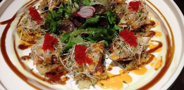 The next was the Mega Roll, which I’ve had before. However, it was presented differently this time. The sushi itself is battered and deep fried. Inside, there is deep fried salmon, green onion, and avocado. On top, there is imitation crab, spicy mayo, and tobiko. Lots of flavour and a hint of spice.
