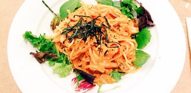 I chose the Prawn Pasta with Creamy Rose Sauce, which came on top of a bed of green salad. The pasta was a hint spicy, but very delicious. It was topped with seaweed to give it an Asian twist. The only problem I had with the dish was that some of the shell was still attached to the tail of the shrimp, so it was more difficult to eat. Would’ve been nice if the shell was completely removed.