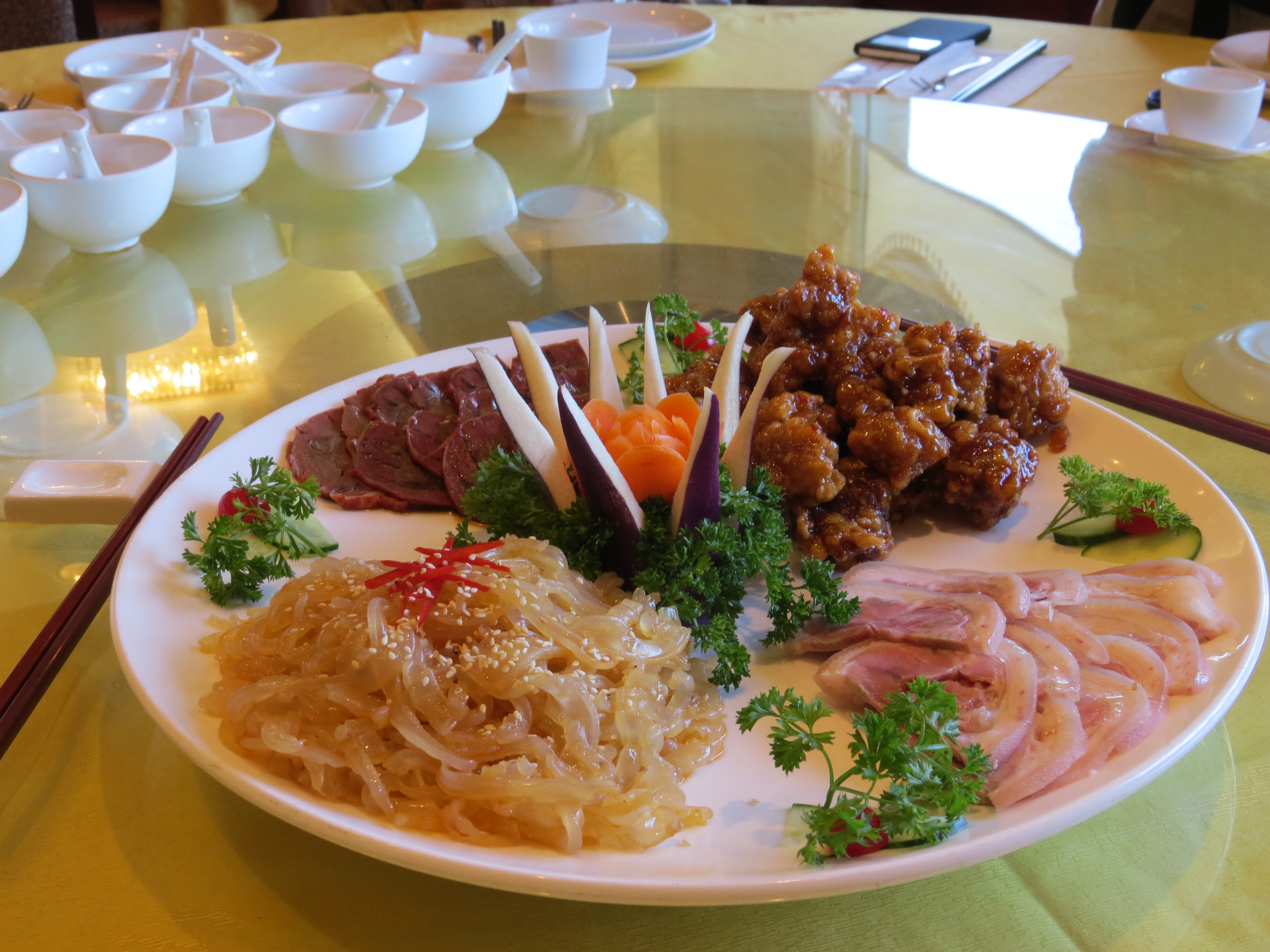 Anyways, our first dish that arrived was the Fraser Court Deluxe Appetizer Platter. A very typical dish that is served at weddings and special events. It consisted of jelly fish, jellied pork hock, honey garlic spareribs, and beef shank. Most of it was pretty mediocre, but I did enjoy the spareribs.